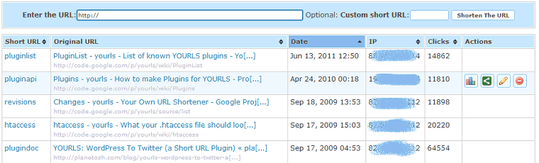 - Developer API to integrate YOURLS into other applications,